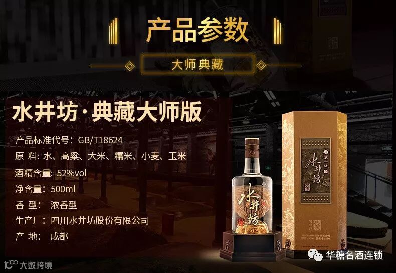 传承历代水井坊酿酒大师对品质不断追求的执着精神,以双轮发酵、双重蒸馏之加倍考究工艺,经一千八百于昼夜天然熟成,终造就典藏大师版,陈香优雅、醇厚丰满之独特口感,堪为浓香典范。酒瓶背侧精雕雄狮,彰显非凡气度,瓶底内烧画,尽显中国非物质文化遗产匠心风华。