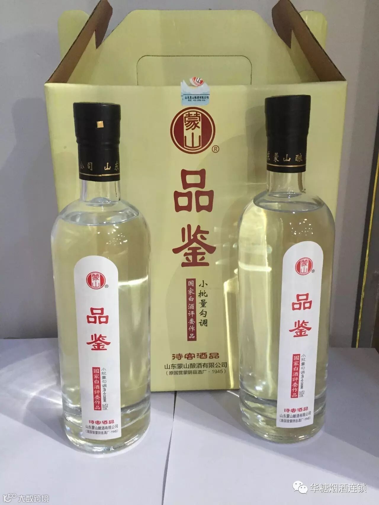蒙山品鉴,30基酒调制而成,现在临沂市场还没有这么好的酒质。瓶身突破传统的造型设计,简单大气,手感细腻。光瓶设计,注重酒体开发,绿色环保,经济实惠。两瓶装手提设计,便于携带。