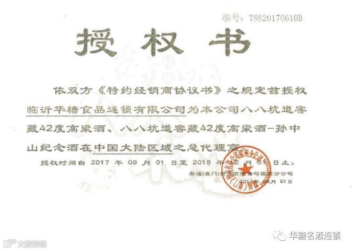1、正宗台湾马祖酒厂山东区域唯一授权华糖名酒连锁独家特约经销商。