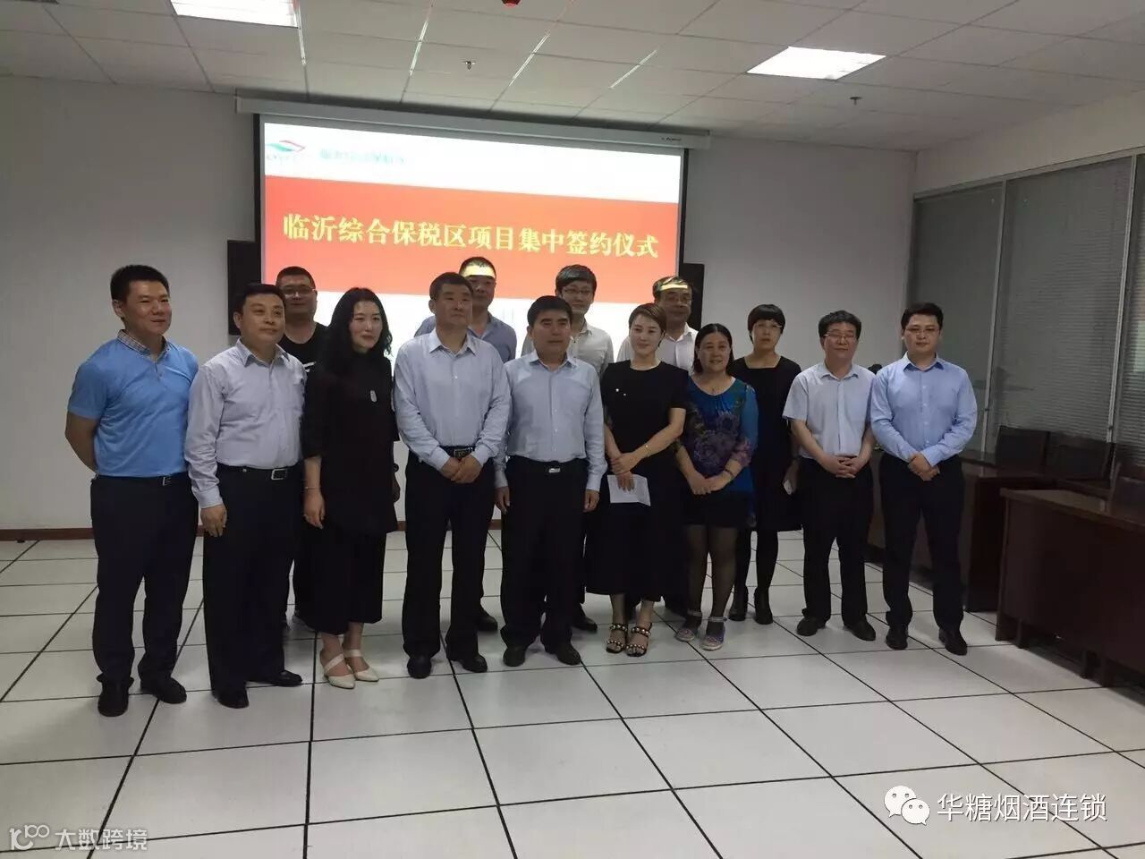 华糖名酒连锁代表刘耸与临沂综合保税区领导合影