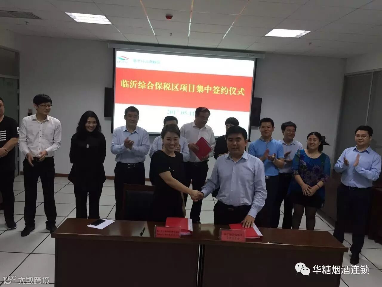 刘耸代表华糖名酒连锁与临沂综合保税区签约成功