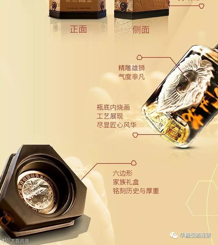 水井坊典藏大师版,酒瓶背侧精雕雄狮,彰显非凡气度,瓶底内烧画,尽显中国非物质文化遗产匠心风华。