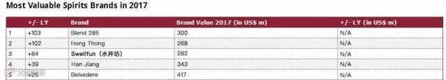 近期,Brand Finance发布了 2017年世界最有价值烈酒品牌榜单 (Most Valuable Spirits Brands in 2017),水井坊位列第44位,并成为上升速度最快的中国白酒品牌。