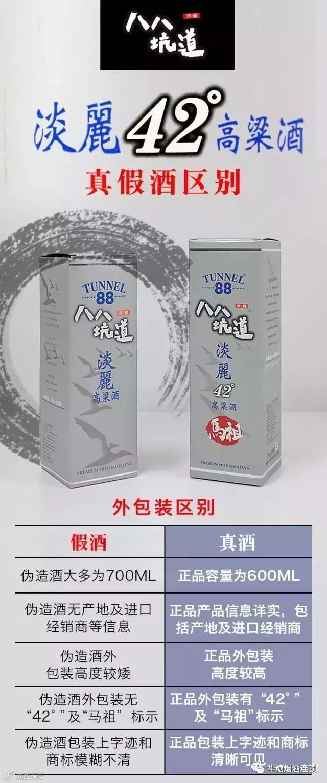 4、华糖名酒各连锁店销售的每一瓶八八坑道都是货真价台湾马祖酒厂生产的正宗八八坑道,品质有保证。