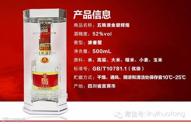 五粮液为大曲浓香型白酒,产于四川宜宾市,用小麦、大米、玉米、高粱、糯米5种粮食发酵酿制而成,在中国浓香型酒中独树一帜。宋代宜宾姚氏家族私坊酿制,采用大豆、大米、高粱、糯米、荞子五种粮食酿造的"姚子雪曲"是五粮液最成熟的雏形。公元1368年,宜宾人陈氏继承了姚氏产业,总结出陈氏秘方,时称"杂粮酒",后由晚清举人杨惠泉改名为"五粮液"。现在五粮液由宜宾五粮液集团有限公司酿制。2013年五粮液品牌价值被《食品界月刊》评估达692亿元。五粮液是中国最高档白酒之一。