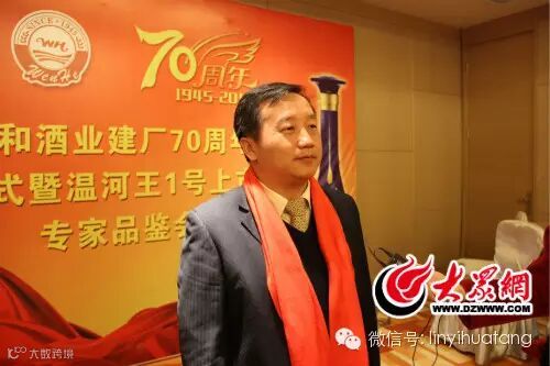 大众网临沂11月28日讯(记者 林鹏 见习记者 徐芳芳)11月28日,“山东温和酒业建厂70周年庆典启动仪式暨温河王1号专家品鉴发布会”在临沂鲁商铂尔曼大酒店举行,来自社会各界的领导、嘉宾以及媒体出席本次活动。温和酒业将立足老区建设,为明天之历史再添一把火。