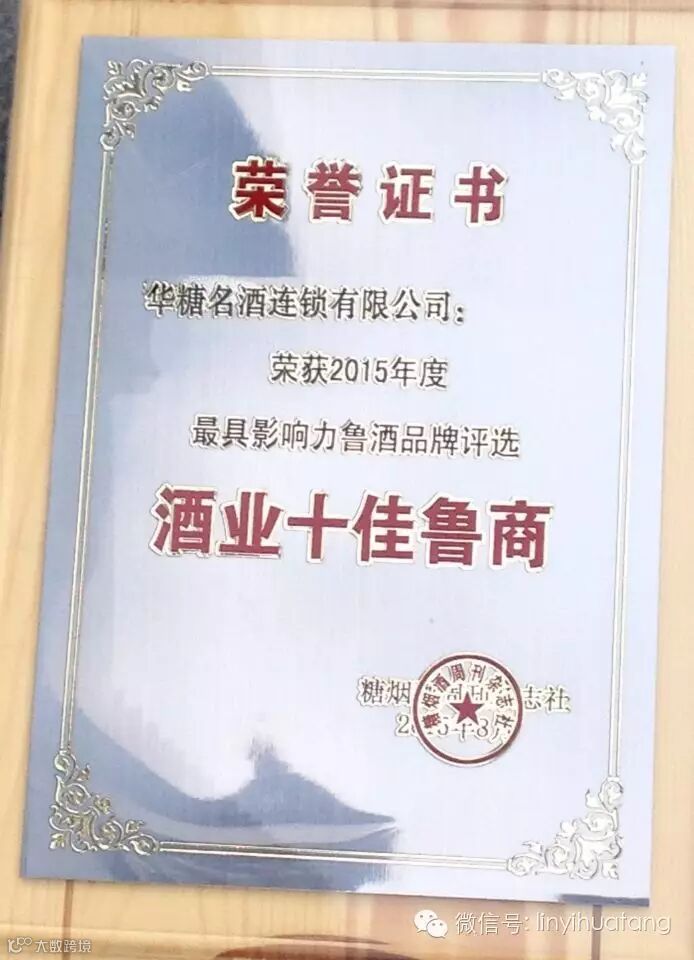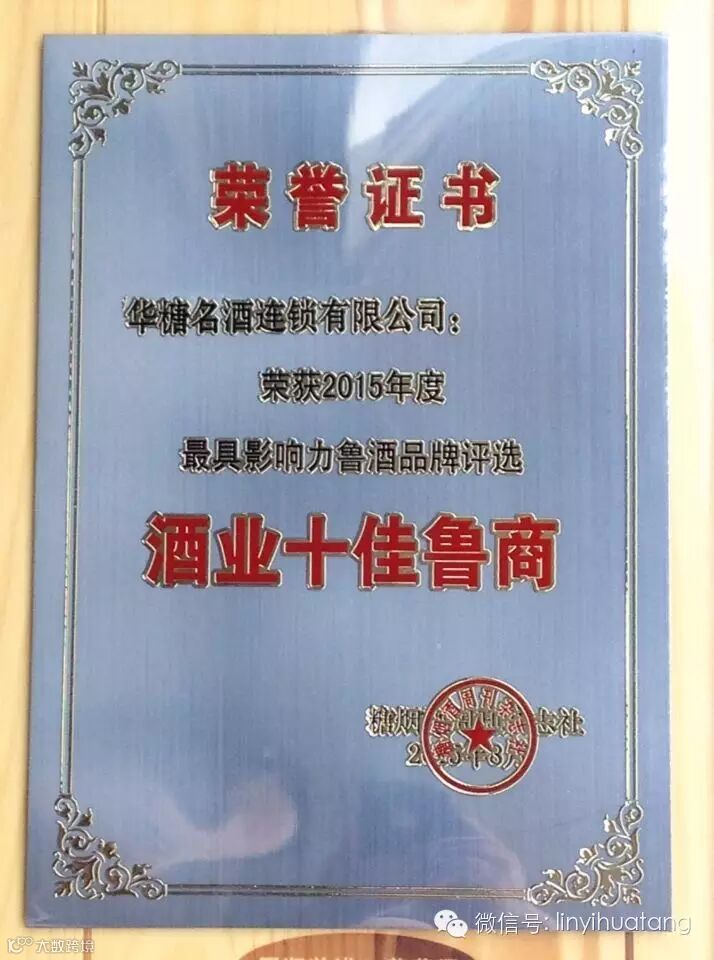 号外!号外!华糖名酒连锁有限公司被评选为山东省最具影响力鲁酒品牌“酒业十佳鲁商”!