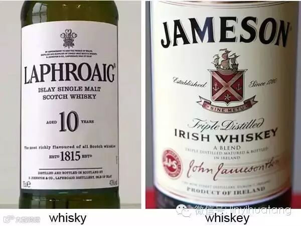 威士忌的英语究竟是 Whisky 还是 Whiskey?其实,这两者都是正确表达,只不过不同国家的表达不一致。其中,苏格兰、日本和加拿大等威士忌产国习惯用 whisky 来标注;而爱尔兰和美国的生产商则大多标为 whiskey。当然也有例外,如美国生产商梅克斯马克(Maker’s Mark)就习惯用 whisky。