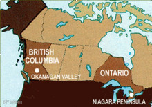 欧肯那根河谷(Okanagan Valley)——风光秀美,当地气候和风土特别适合葡萄的生长,该地区靠近欧肯那根沙漠,葡萄生长期昼夜温差较大,凝聚了大量的糖分,成熟后气候寒冷,有利于葡萄自然浓缩冻结,而且不易霉烂,欧肯那根知名酒庄有Summerhill Pyramid Winery(金字塔庄园)、kalala(卡拉拉庄园)、Sonoran(索诺兰庄园)等,欧肯那根酿造出加拿大乃至世界上顶级的冰酒,就冰酒而言,BC省相对安省贵30%左右。