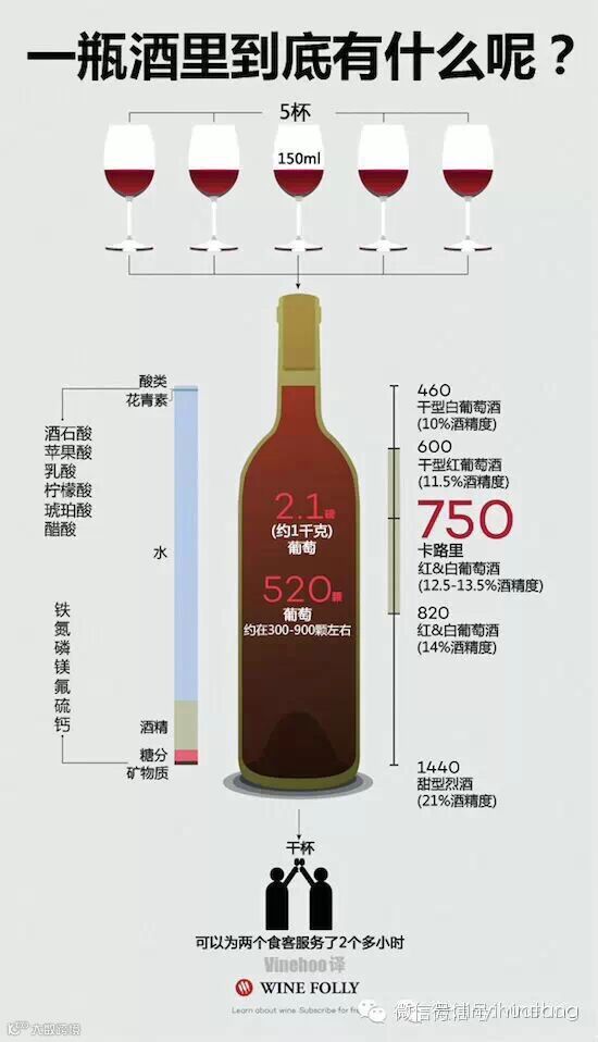 一瓶葡萄酒中约含520颗葡萄(根据不同品种在300-900之间浮动)