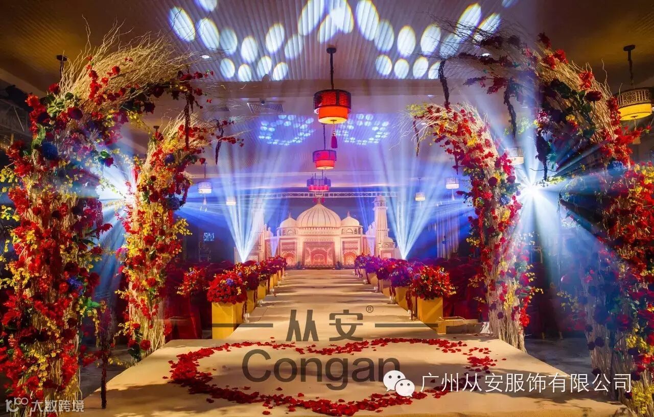 这次从安定制的婚礼是以典雅传统为主题,大红色的鲜花能将鲜红的阿拉伯风格民族婚纱衬托得更加庄重而有品味。
