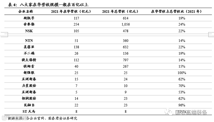 八大家轴承品牌在华营收规模一般在百亿以上。