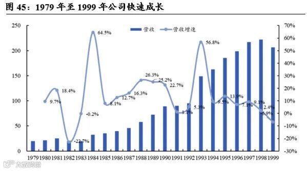 第三阶段:1980-1999年,持续全球扩张阶段。1980年至1989年,公司研发中心规模扩大一倍,并在意大利、韩国、新加坡、委内瑞拉开设销售网点,生产效率不断提高,收益增加。
