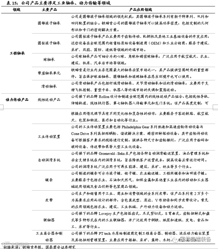 目前,铁姆肯公司所涉及的动力传动类产品包括工业传动装置、自动润滑系统、链条、联轴器、密封圈、润滑油及相关领域的售后服务,2021年动力传动产品营收占总收入的32%。