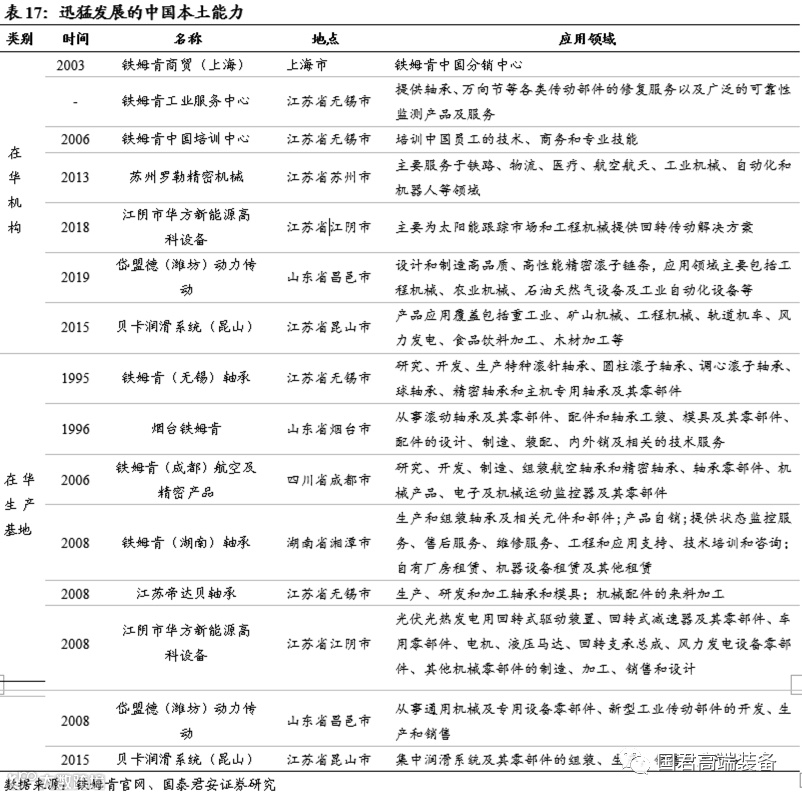 世界八大轴承企业初期练好内功,凭借内生创新和外延并购拓展产品边界,乘本地终端市场爆发之东风迅速成长,通过全球化布局进一步扩大规模并保持盈利能力。
