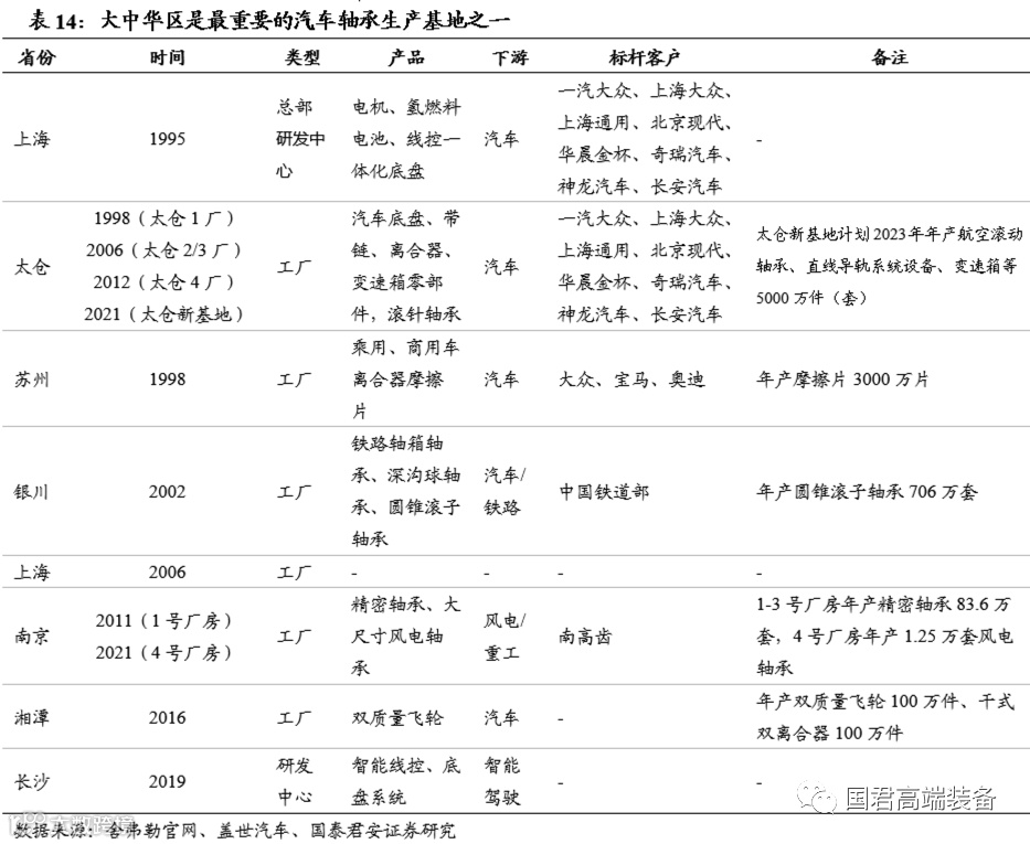 截至 2021 年底,轴承品牌的三大巨头在中国均有投资生产轴承以及相关产品的工厂。其中: