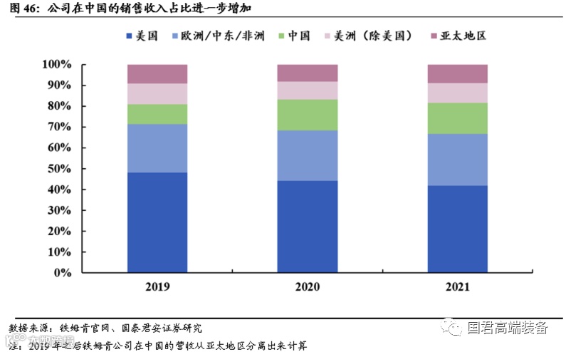 除公司总部所在的美国市场外,中国已成为铁姆肯全球第二大市场,销售收入占比从2019年的9.51%增加至2020年的14.89%。