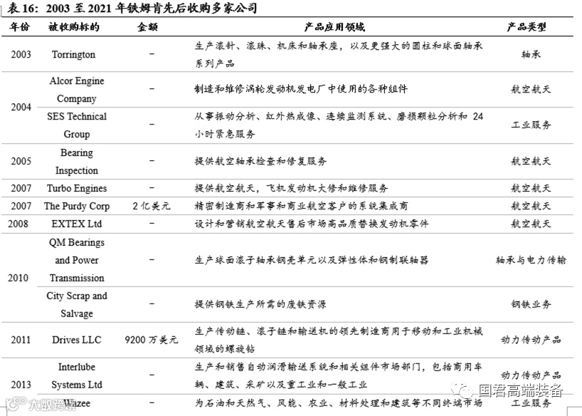 通过战略收购,扩大产品组合。铁姆肯始终对市场发展的脉络保持高度敏感性,在目前全球经济普遍不景气的背景下,顺应市场需求发展的趋势,及时调整公司战略并不断拓展自身业务涉及领域。