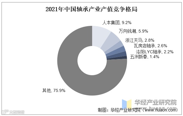 国内轴承市场上,八大国际轴承企业占据主导地位,且主要集中于高端市场,而本土轴承企业的营收规模较低、市场份额较分散、多生产中低端产品。