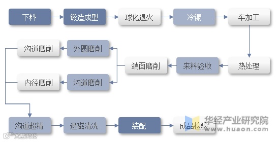 轴承制造过程中磨削环节最多,包括端面磨削、外圆磨削、沟道磨削、内径磨削等处理,需要大量使用磨床设备。轴承生产中磨削加工劳动量占总劳动量60%,该步骤所用的金属切割机床(主要是磨床)的数量也占全部金属切削机床的60%左右。在轴承生产过程中,磨削加工成本占轴承总成本的15%以上,高精度轴承的磨削加工成本占比较普通轴承更高。