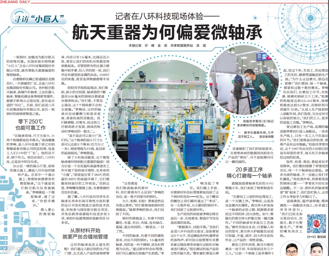“在轴承领域,尺寸方面大、小两个极端都是技术难点。”高高瘦瘦的李响,是八环科技旗下浙江利钧智能装备有限公司的总经理,也是工人们口中的“厂长”。他的话不多,精干有力。他告诉我们,八环科技,正是其中的佼佼者。