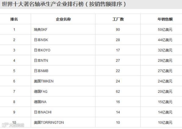 同时,世界轴承行业的高端市场被上述企业所垄断,而中低档市场则主要集中于中国。而我国瓦轴等10家最大的轴承企业,销售额仅占全行业的24.7%,前30家的生产集中度也仅为37.4%。