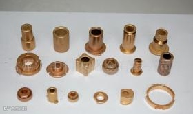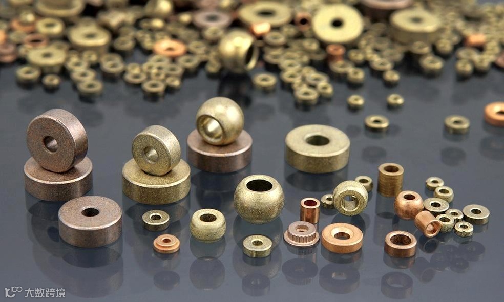产品是以铜粉或铁粉或合金粉为原料,经模具压制、高温烧结、真空浸油后加工而成。产品主要用于家用电器、各种微特马达等。