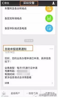 5.关注【深圳交警】公众号,查看自助申报结果通知,随时更新信息