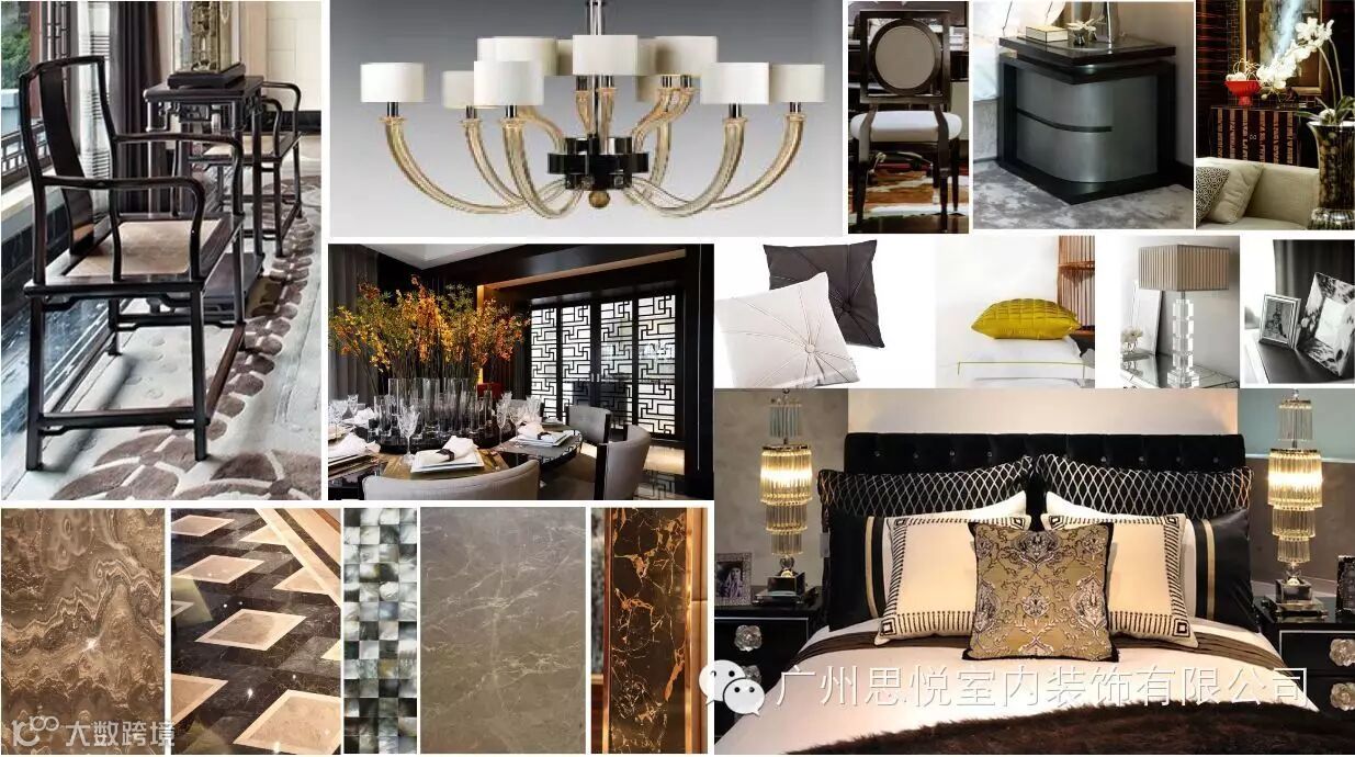 主要品牌:黑檀木饰面、黑金花大理石、孔雀蓝大理石、镜面玫瑰金不锈钢、扪布软皮。