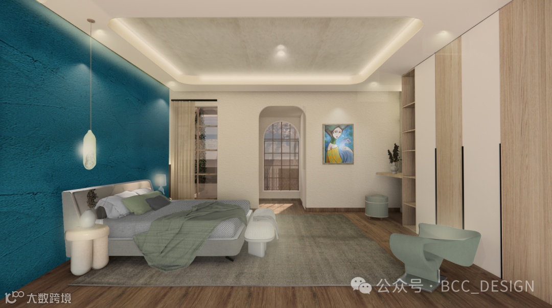 The Master of the rest space and studio with a bold peacock blue and green grass, emotion and color are very rich, is also the hostess of the character.