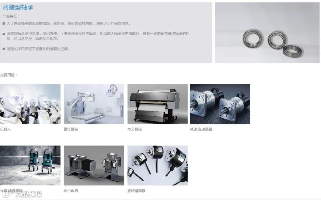 薄壁型轴承、不锈钢轴承、耐高温轴承等
