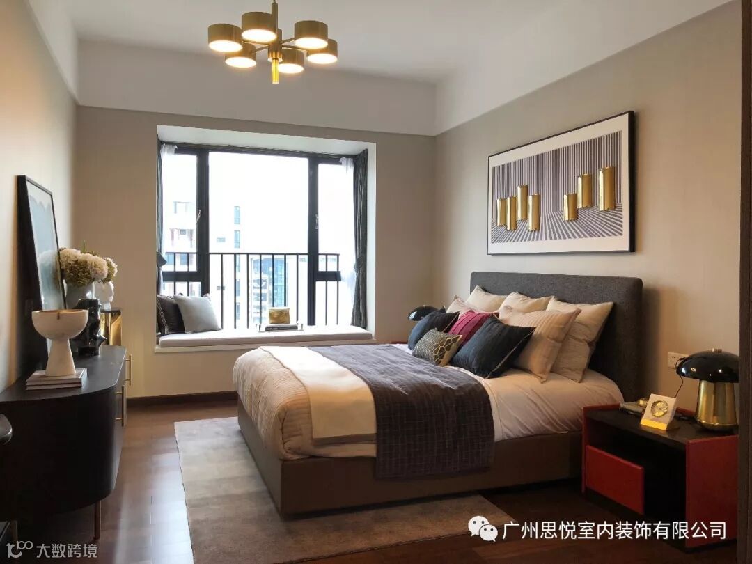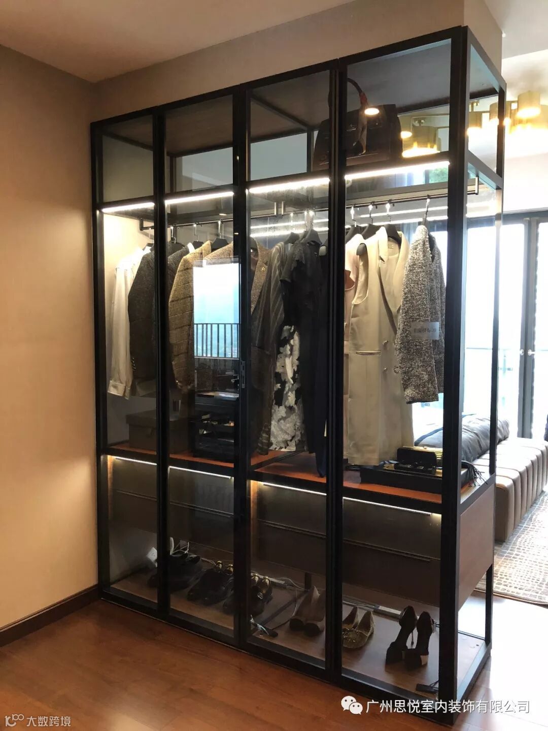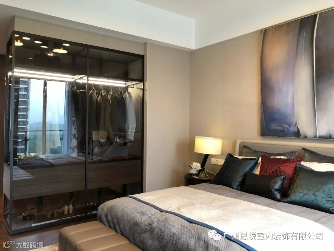 整体以温馨舒适为主,利用玻璃衣柜提升整个空间的品质感。