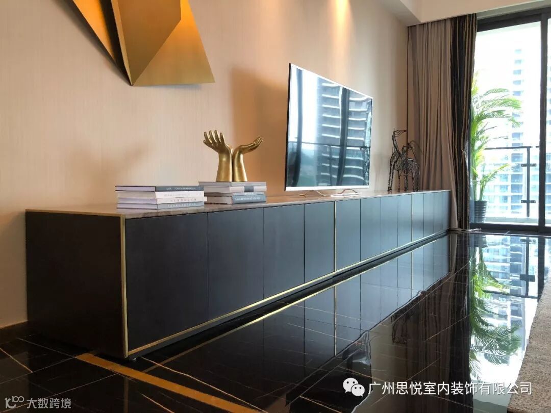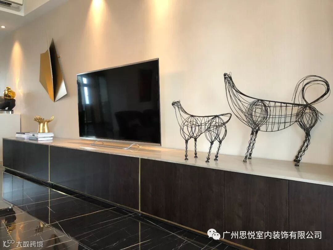地面拨打线增加空间的层次感,客厅整体以休闲舒适为主,色彩上运用时下最流行的金属色调与光感呼应,营造出一种和谐的氛围感。