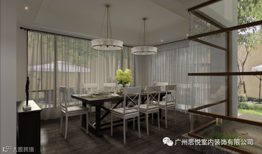 餐厅美式家具、复古造型的吊灯,将空间内敛而深刻的美式奢华与优雅情调延展开来。