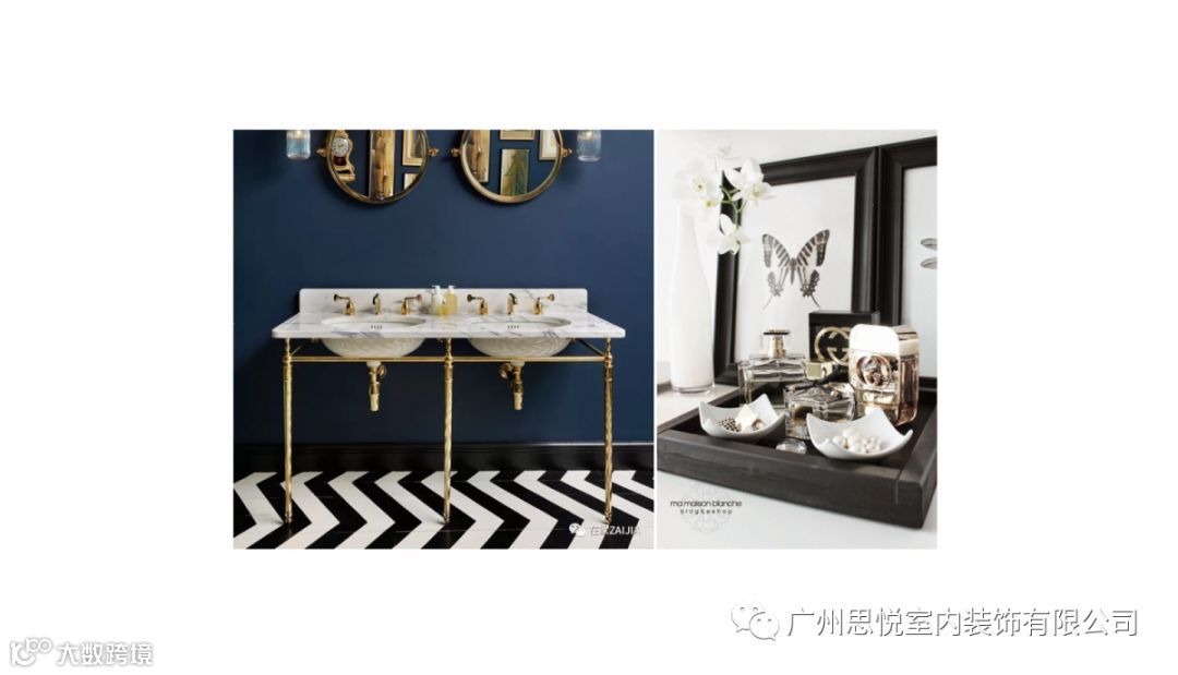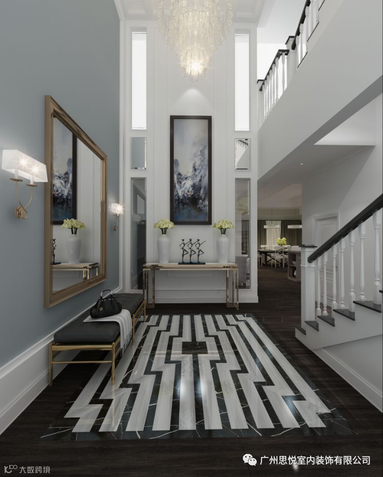 玄关设计先声夺人。它就像一本书的扉页, 金色的使用,使得它与平凡质朴区分开来。
