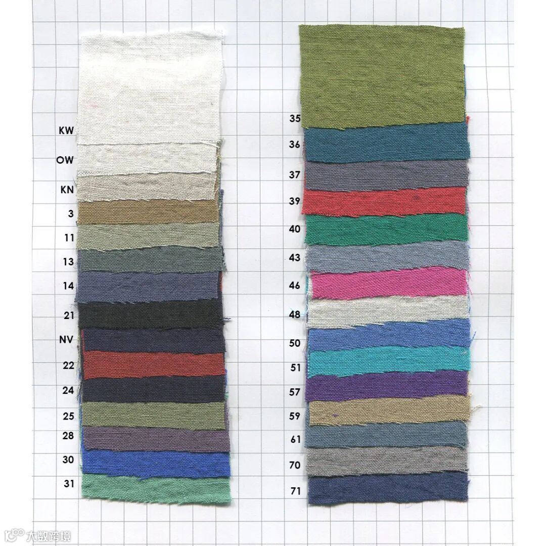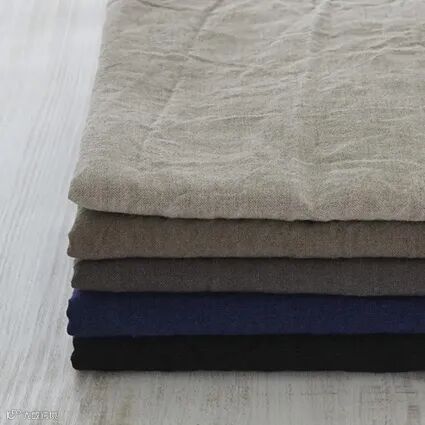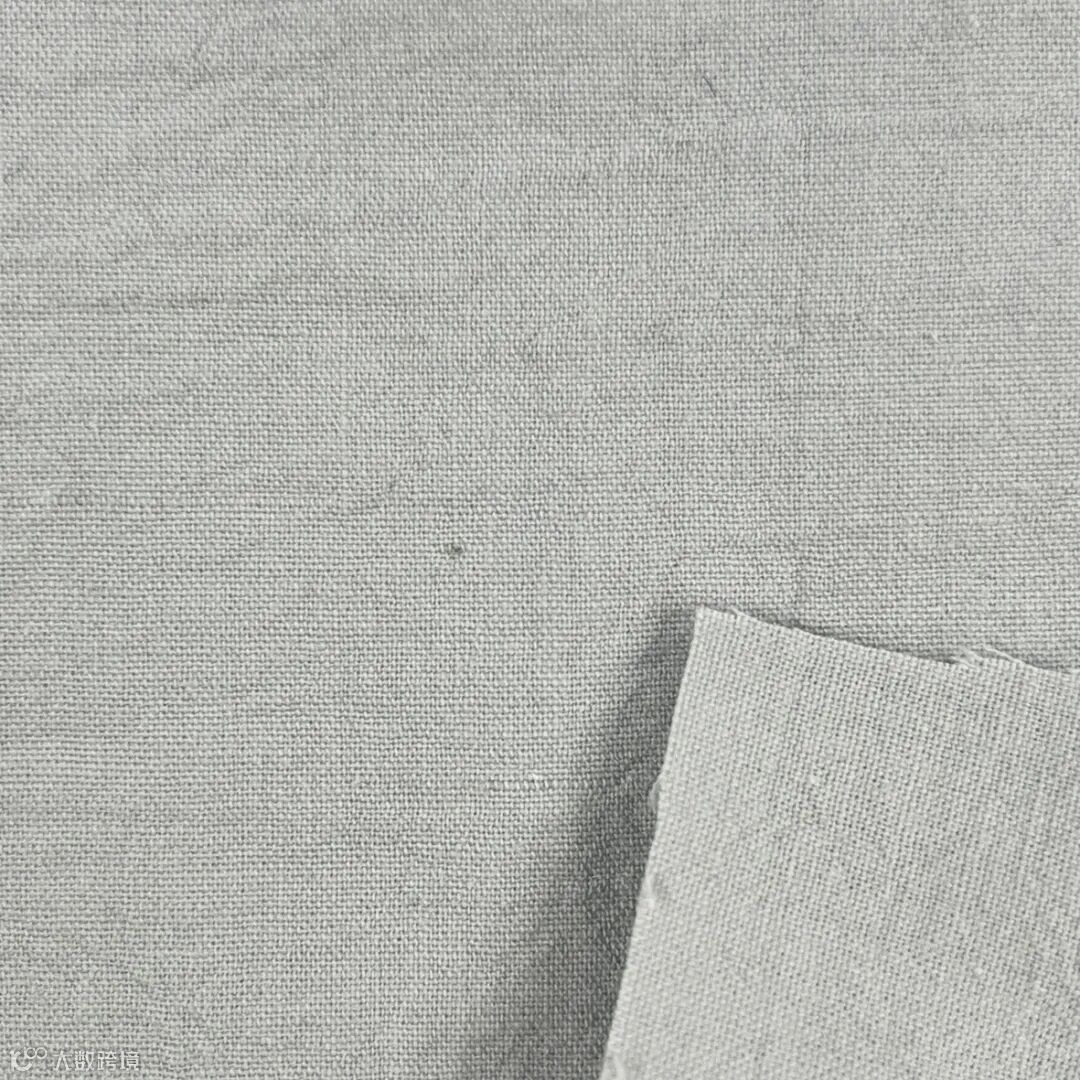 这是经典的 60/1 平纹亚麻布。亚麻布原本挺括的质感被柔滑的垂坠感所取代,呈现出一种柔和的质感。经过洗涤后会变得更加具有夏日风情。