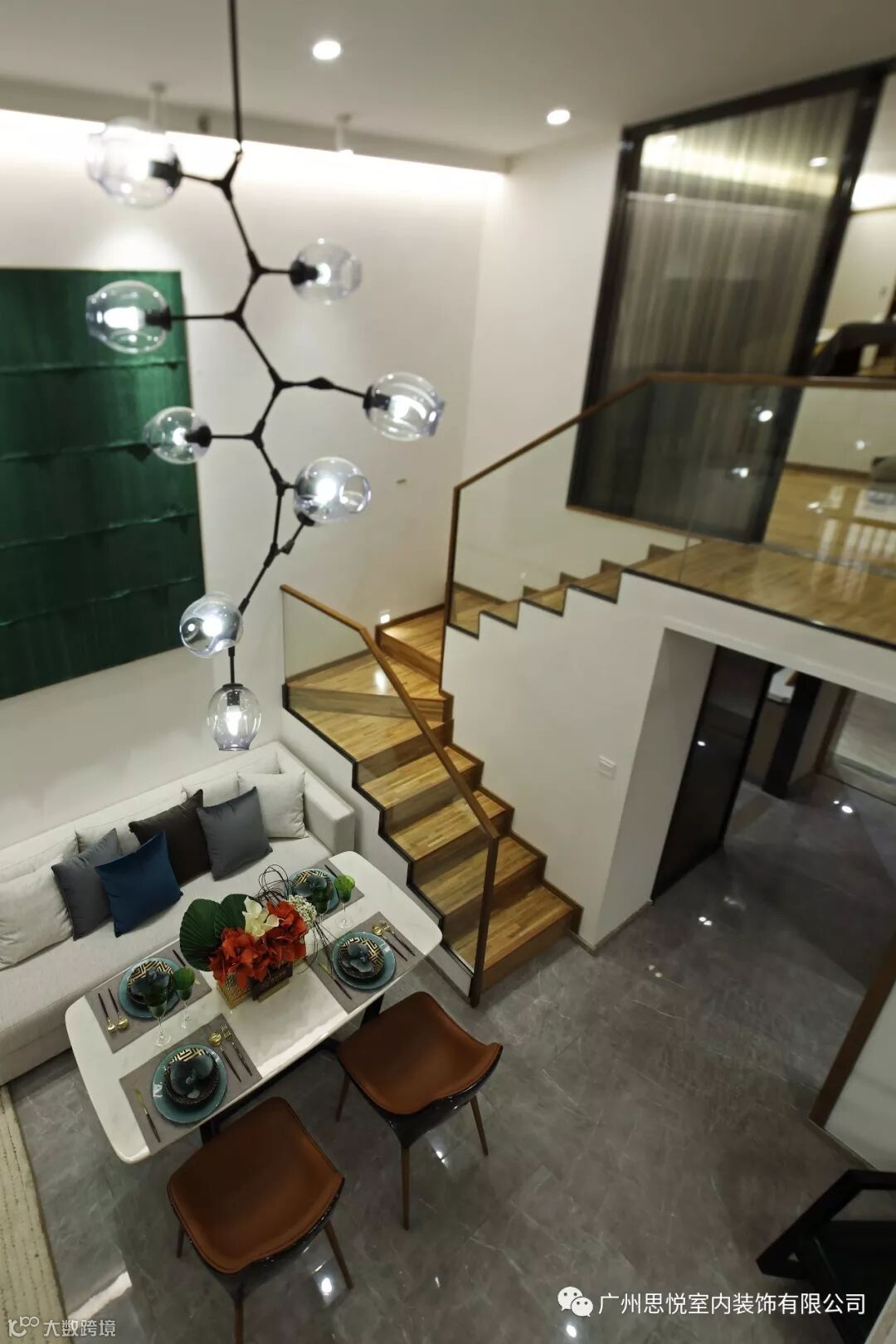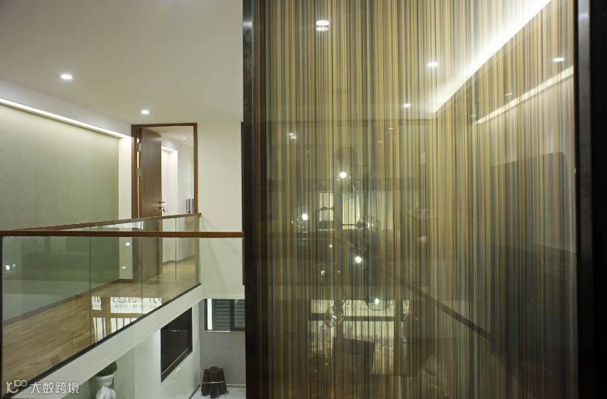 楼梯是空间与空间的媒介,设计师只运用了最简约的玻璃加实木扶手,便使满满的绿意在整个空间肆意横流。