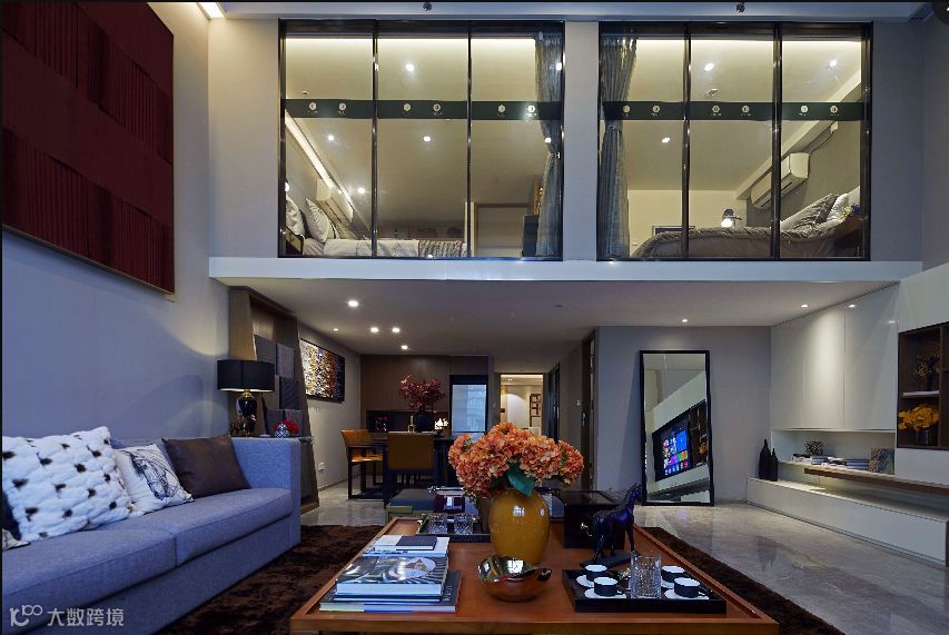二层的中空位,给与了两个卧室足够的光线和连接。小户型也可以很有格调。