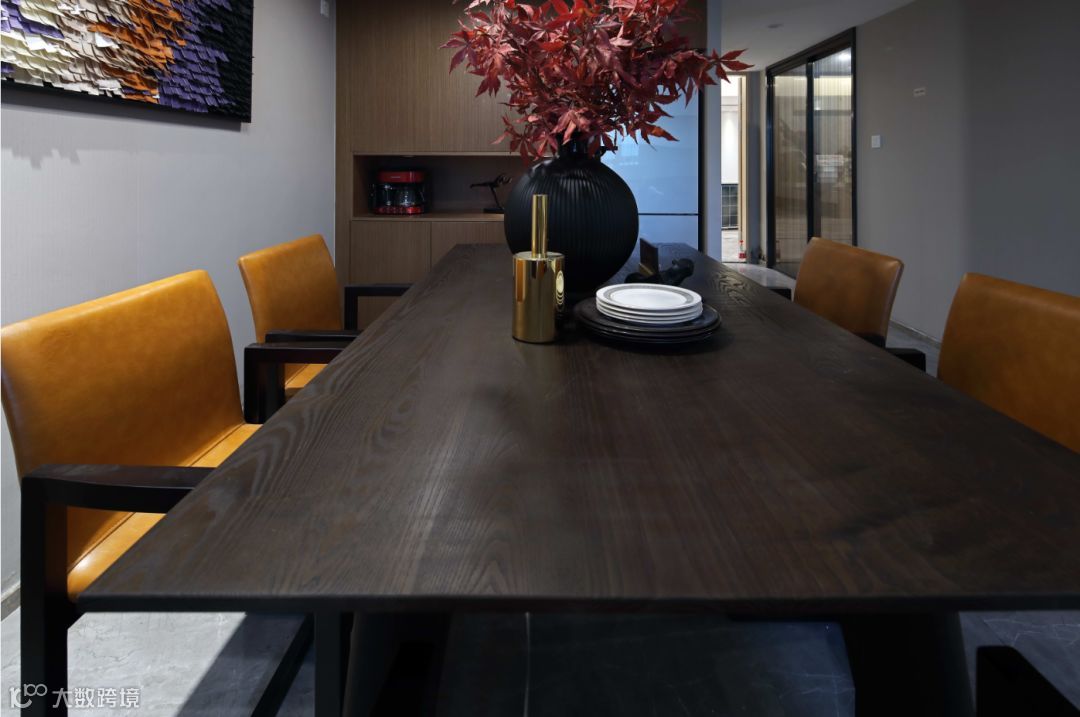 没有无意义的元素堆砌,在不经意间透漏着时尚、潮流气息,不管看多久都不会觉得审美疲劳。皮艺和布艺的结合柔化了空间的温度,营造了一种认真生活的生活态度,让业主感受到舒适和自由,以及属于家最本质的温馨。