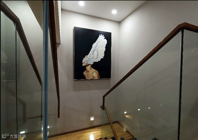 透的玻璃扶手秉承了简洁的设计理念,贯通整个设计空间,精致又不繁琐。