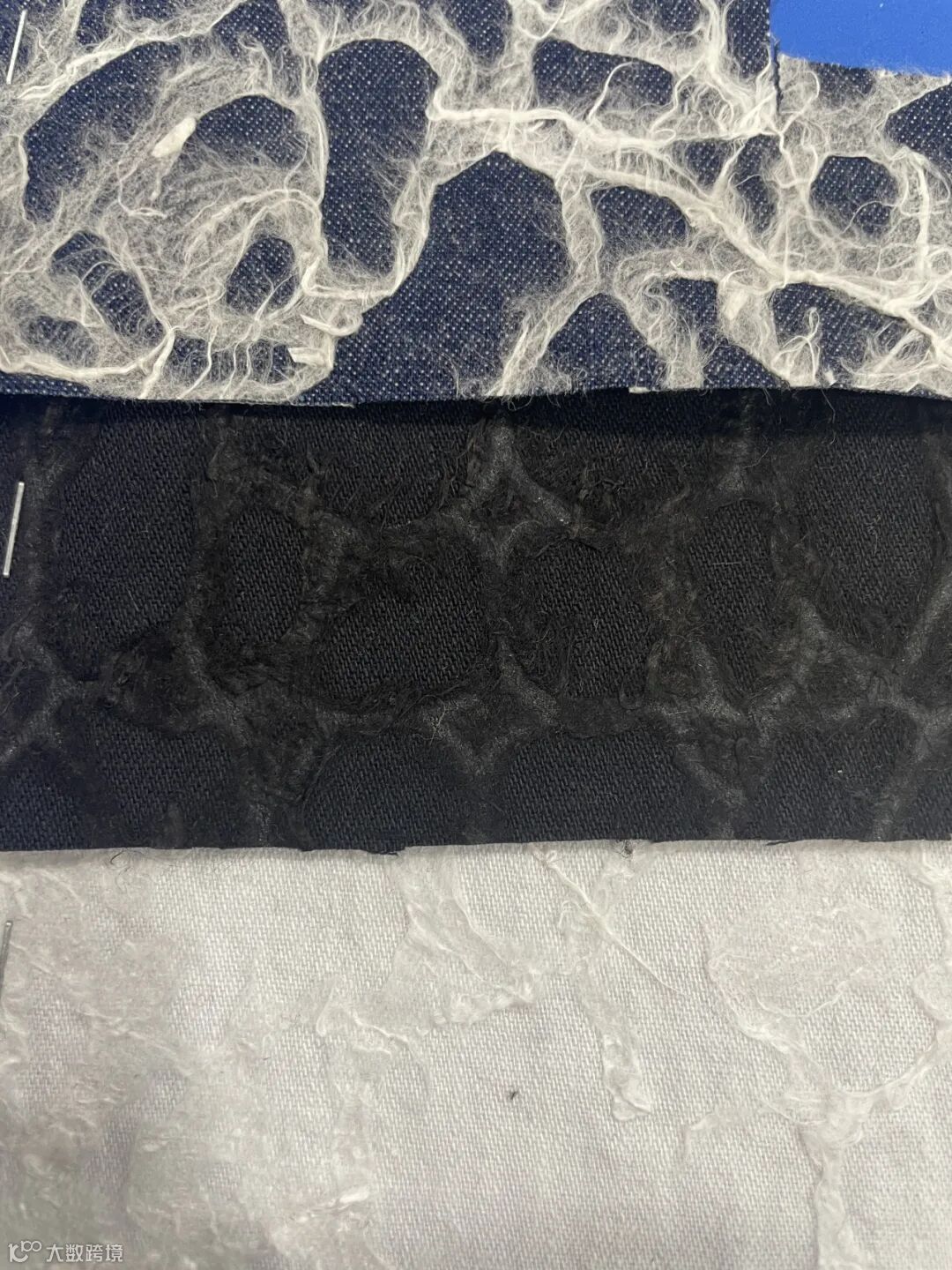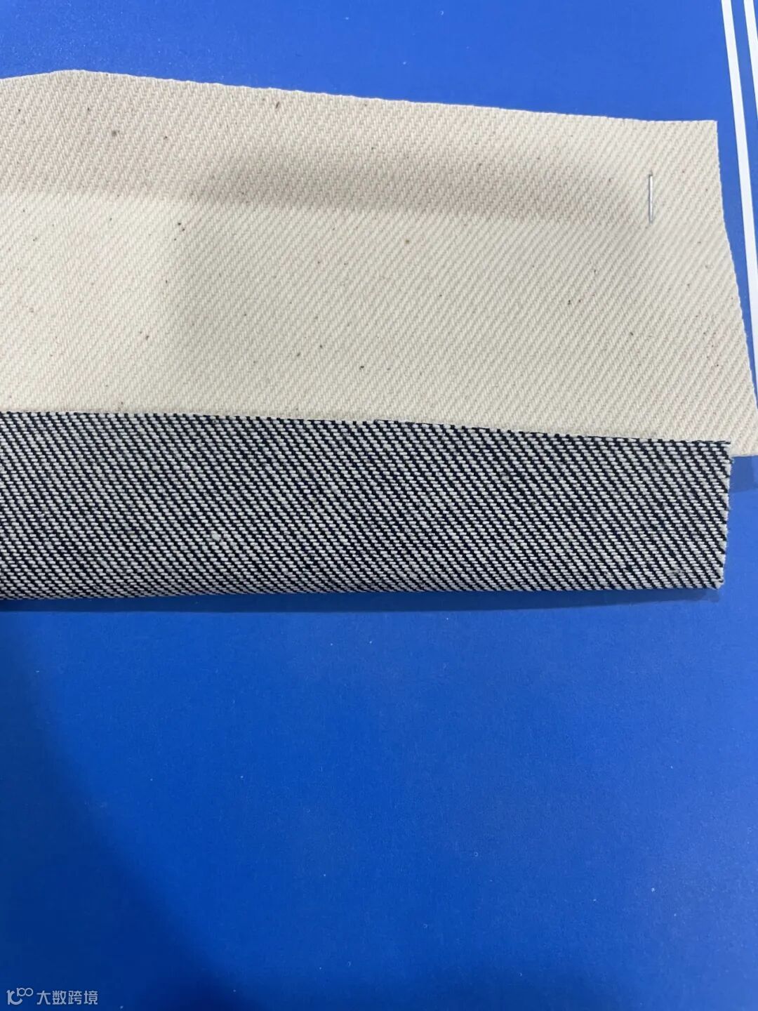 清澈的白蓝色,正反双面都是好看的斜纹牛仔组织。