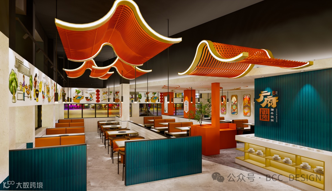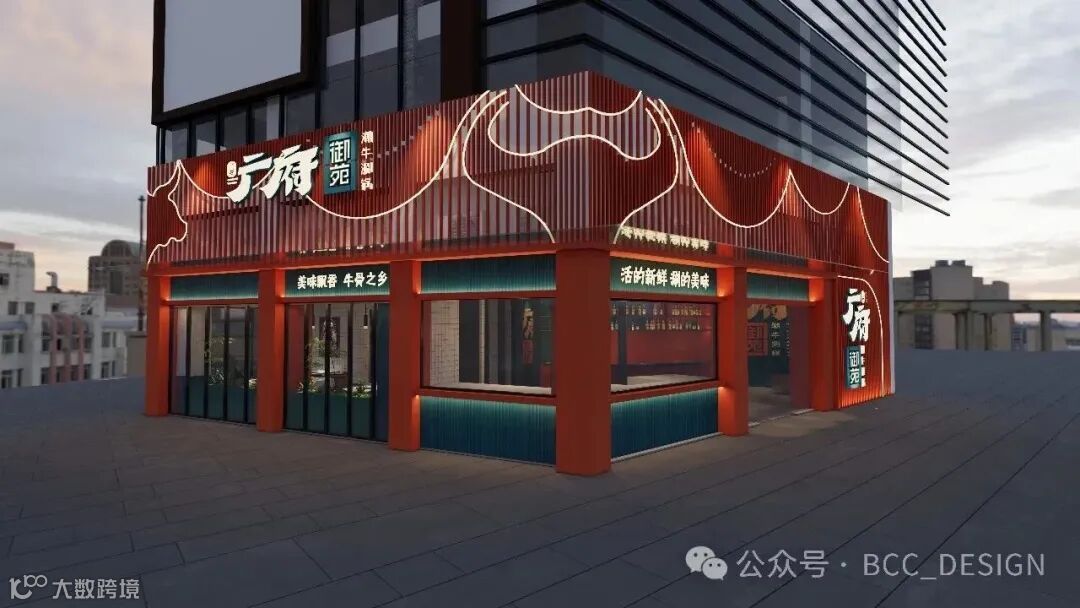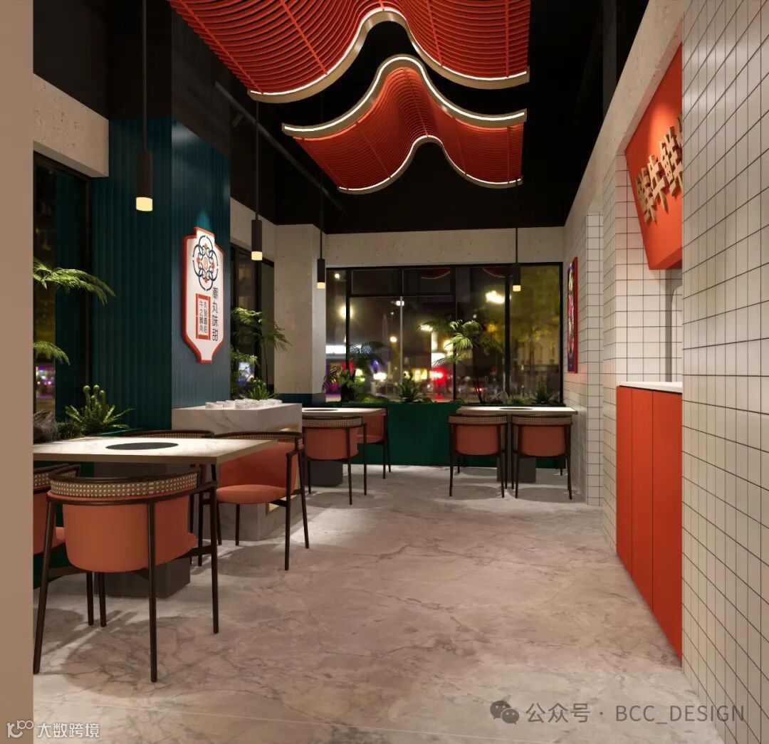 The facade design boldly adopts a large area of Forbidden City red, cleverly combining ox horn elements with Cantonese elements, and the classic retro green decoration is a visual feast.