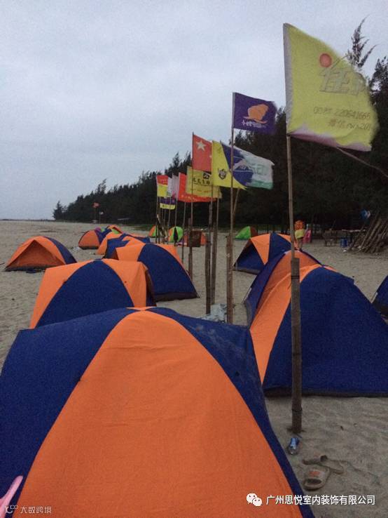 不知不觉中,迎来了第二日的黎明,海风呼呼,旗帜飘扬,海边露营的我们静静的享受这悠闲的一刻!
