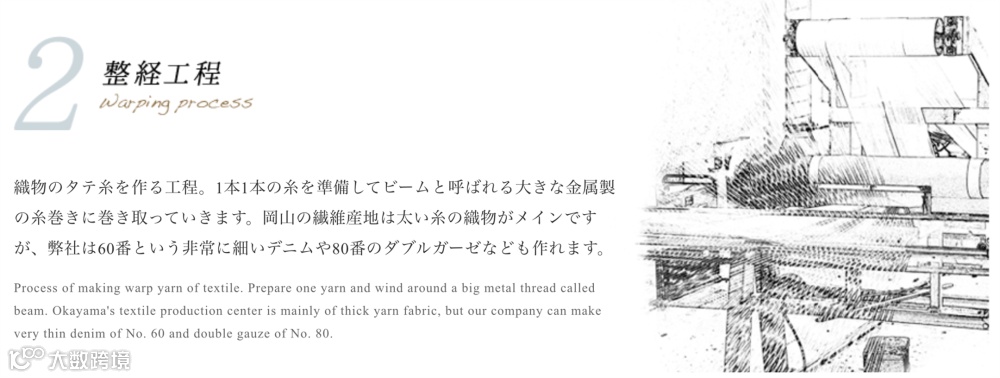 整经是纺织经纱的制造工艺,在冈山,许多工厂主要生产粗纱织物,但SHOWA可以生产非常薄的牛仔织物和双纱。