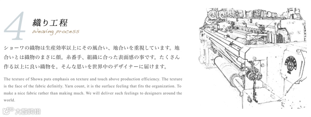 SHOWA的一贯化生产涵盖20多道工艺,可以大致上分为染色、整经、上浆、织布和洗涤5个步骤:
