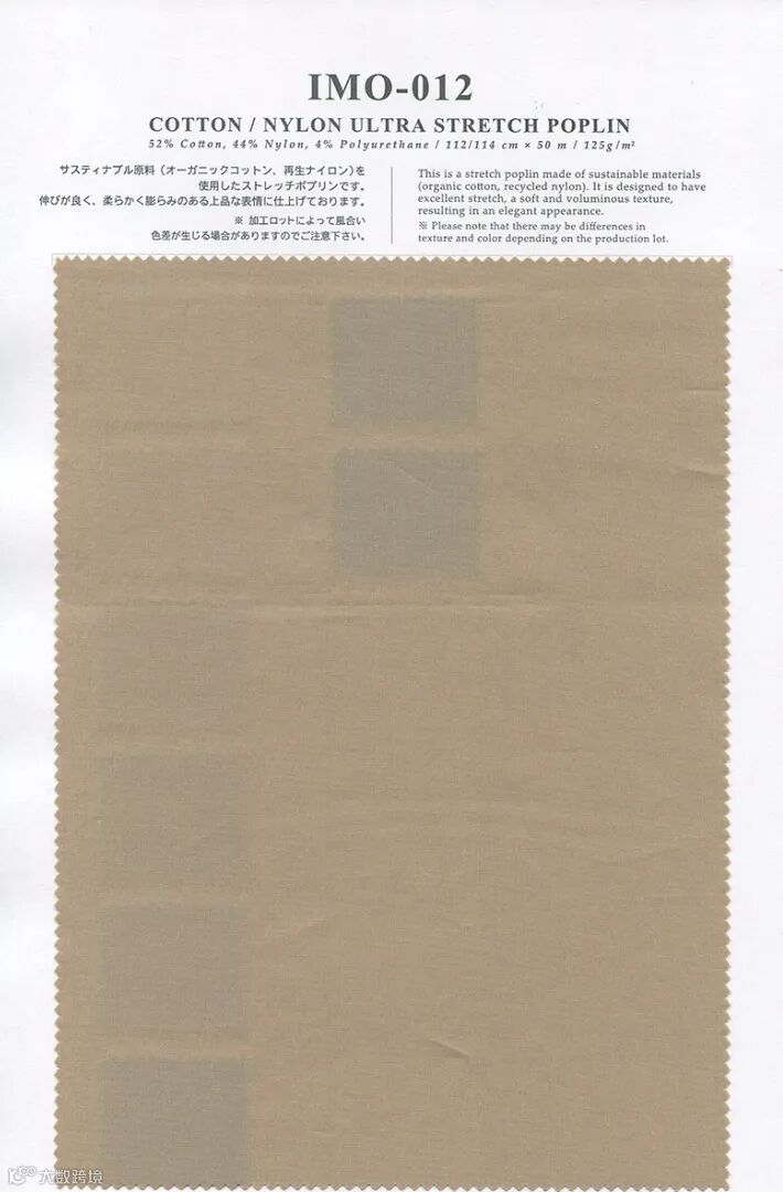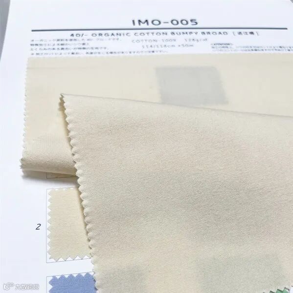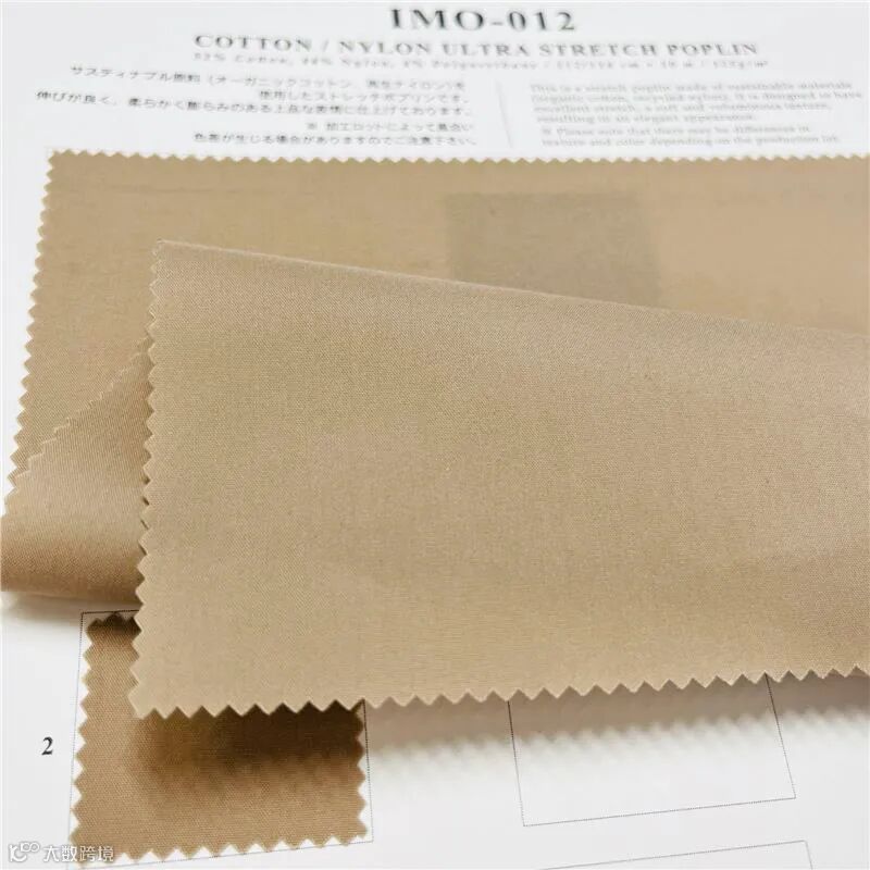 采用可持续原料(有机棉、再生尼龙)制成的弹力府绸面料。