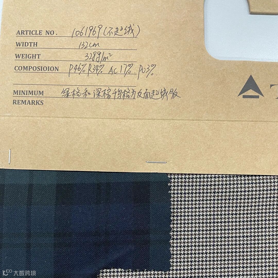 褐色格子为不起绒版本,深绿和深棕千鸟格为反面起绒版。与上一张面料相似的设计风格,但手感要柔软的多。