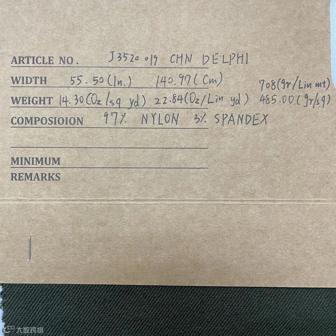 深沉的绿色,尼龙与Spandex的混合成分,手感却充满了棉感,高弹力以及高回复,适合户外的运动外套以及裤子。