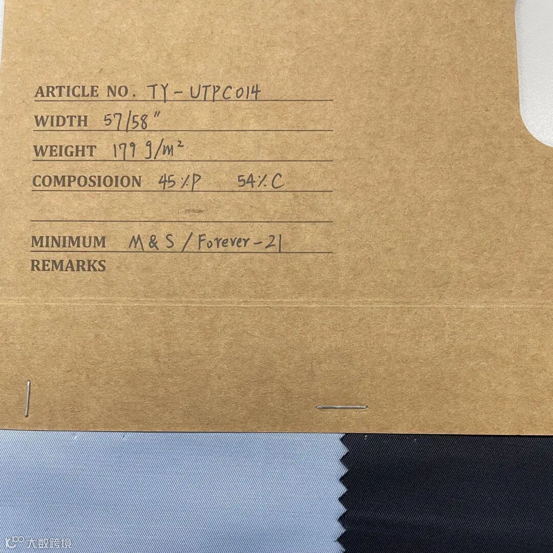 棉涤纶混纺而成,面料手感细腻且具有光泽,微弹,适合当作外套的面料来用。