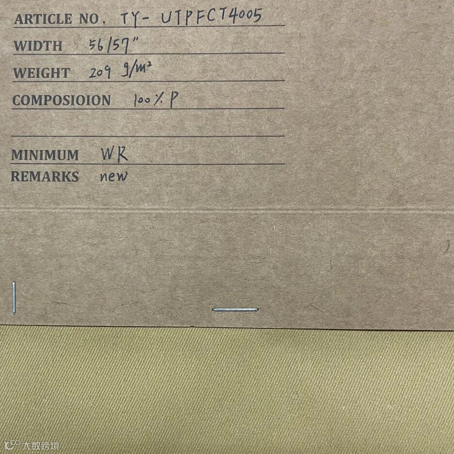 细腻漂亮的姜黄色,全涤纶的成分,手感却如同棉,在后整理增加了防泼水的功能,即户外又时尚。